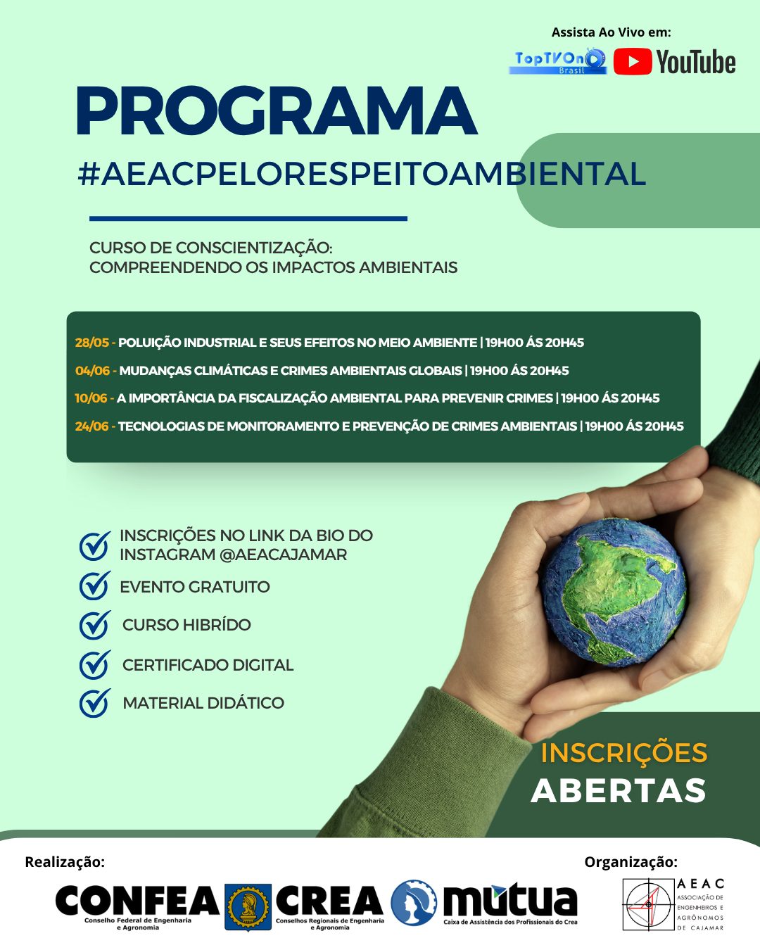 O Programa #AEACPeloRespeitoAmbiental está imperdível! Um curso gratuito, híbrido e com certificado digital, voltado à conscientização sobre os impactos ambientais.