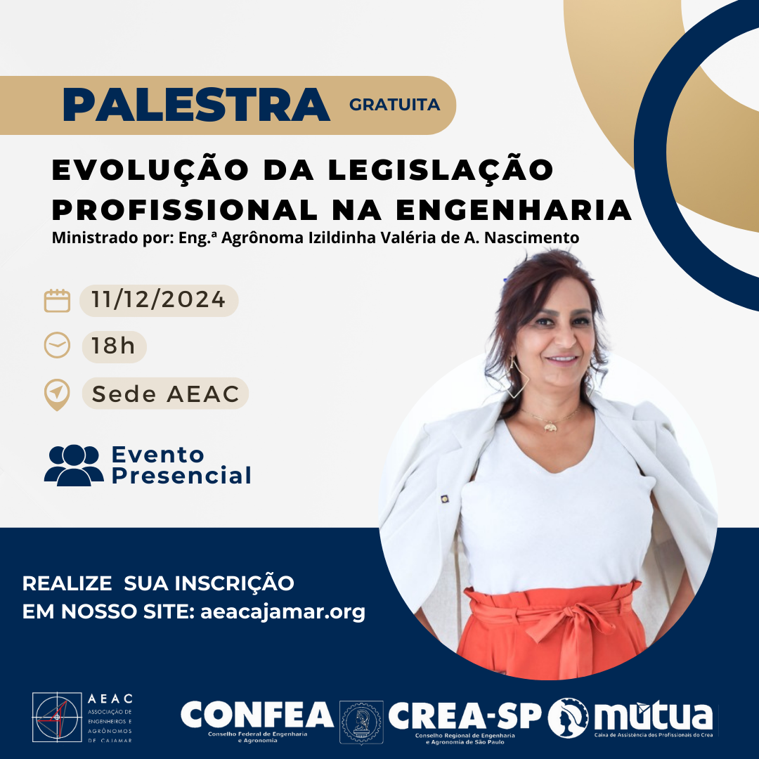 PALESTRA GRATUITA: EVOLUÇÃO DA LEGISLAÇÃO PROFISSIONAL DA ENGENHARIA